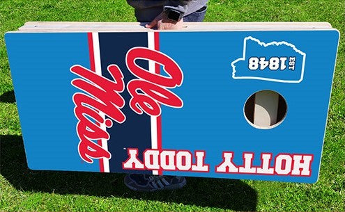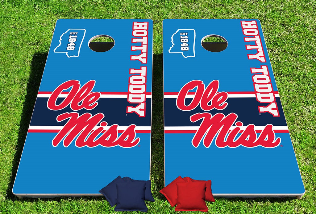 Ole Miss Rebels Hotty Toddy Powder Blue Pro Cornhole Bean Bag Toss Game 24x48 with 8 Regulation 16oz Bags